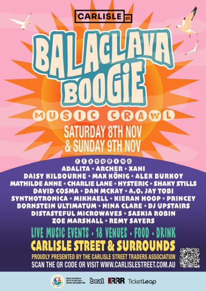 November 8th & 9thThe Balaclava Boogie is Melbourne's quirkiest music crawl-wher a haircut ,a cocktail, or even a bagel could come with a world class live set.